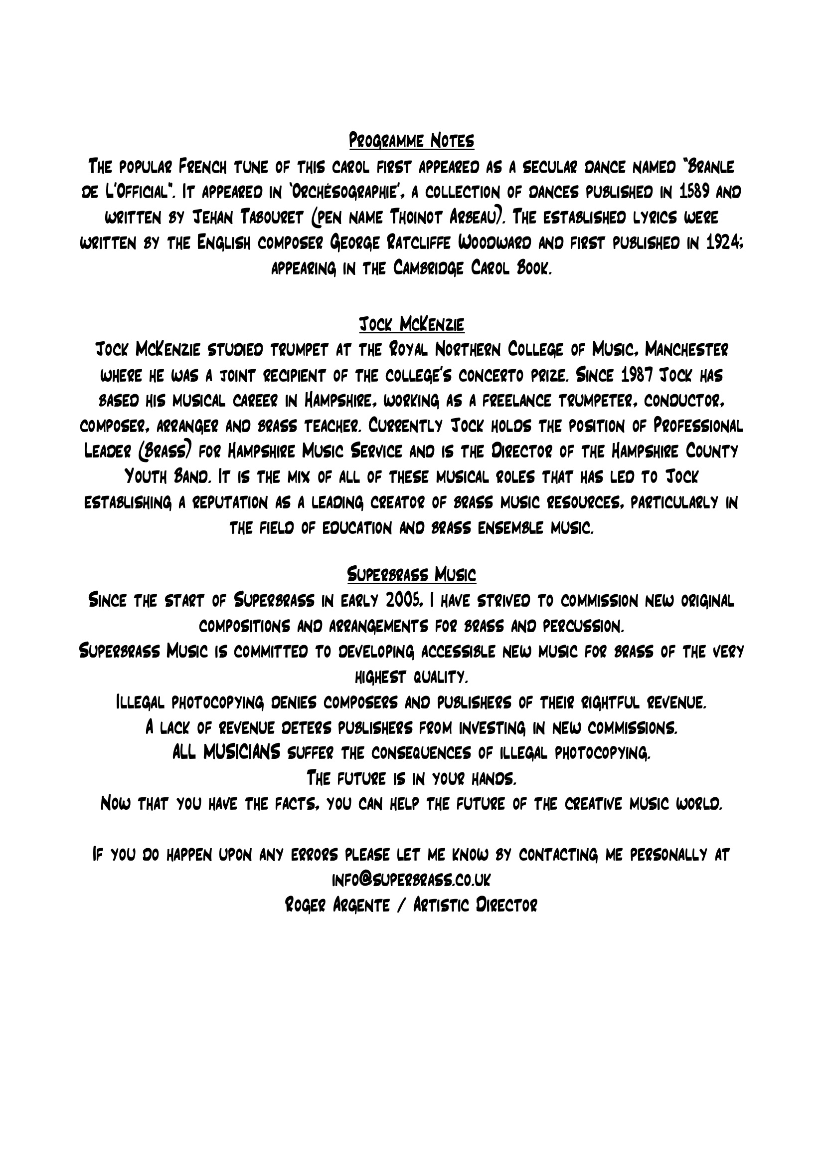 Jock McKenzie studied trumpet at the Royal Northern College of Music, Manchester where he was a joint recipient of the college’s concerto prize. Since 1987 Jock has based his musical career in Hampshire, working as a freelance trumpeter, conductor, composer, arranger and brass teacher. Currently Jock holds the position of Professional Leader (Brass) for Hampshire Music Service and is the Director of the Hampshire County Youth Band. It is the mix of all of these musical roles that has led to Jock establishing a reputation as a leading creator of brass music resources, particularly in the field of education and brass ensemble music.