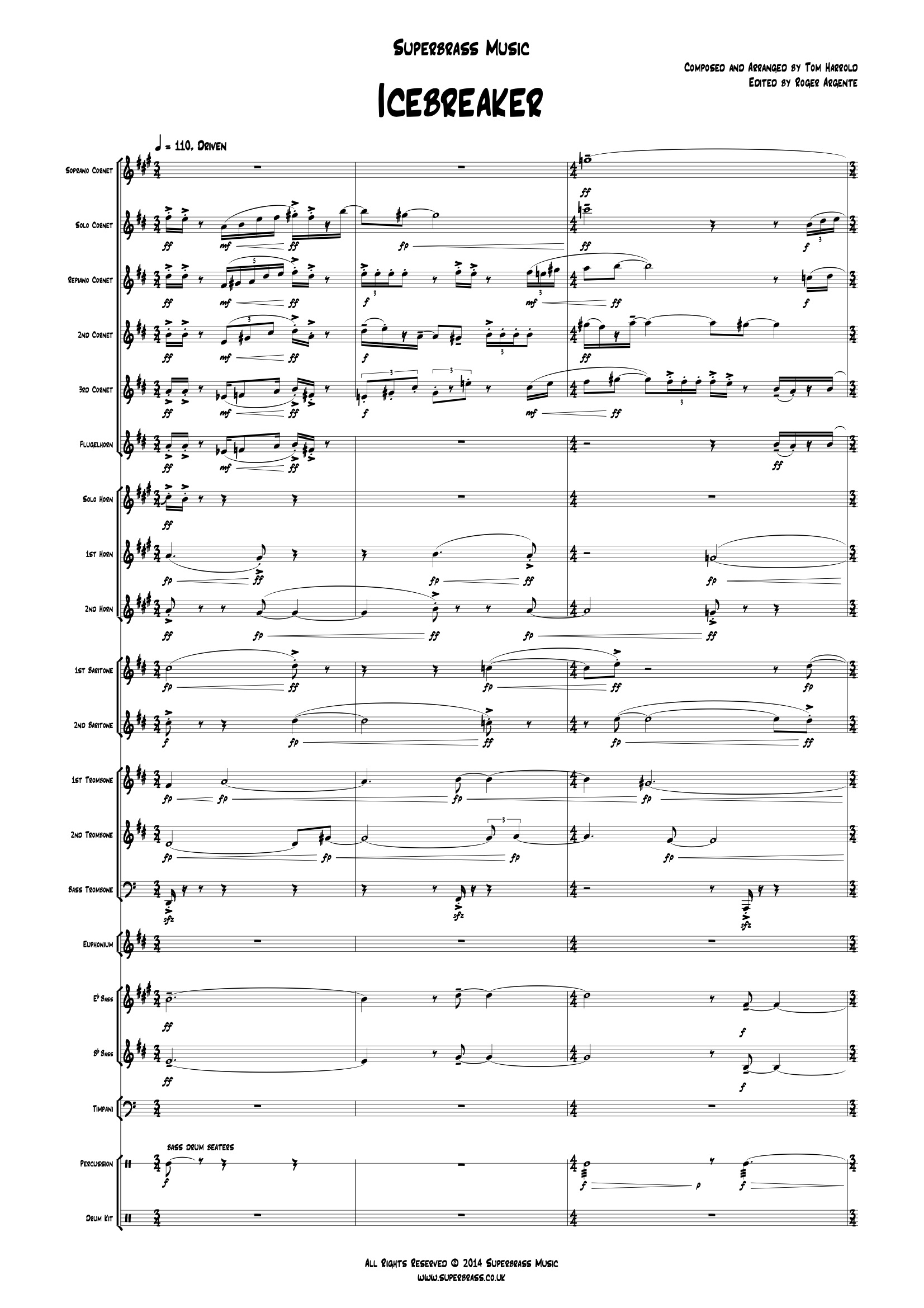 Icebreaker was originally scored for brass dectet and percussion and was completed in March 2012. The work begins with tumultuous fanfare written for the four trumpets, shrouded by thick chords in the lower brass. This fanfare-like material leads to a biting statement from the trombones. An ‘icy’ gritty section, once again played by the trombones grows in energy, punctuated by the return of the trumpets’ fanfares. The horn, providing a little respite, emerges in a quiet restrained solo line, which is coloured by the rest of the ensemble. Before fully coming to fruition, the horn is quickly cut-short and subsumed by the sudden return of the energetic material from the instruments, which grows to the end of the piece.