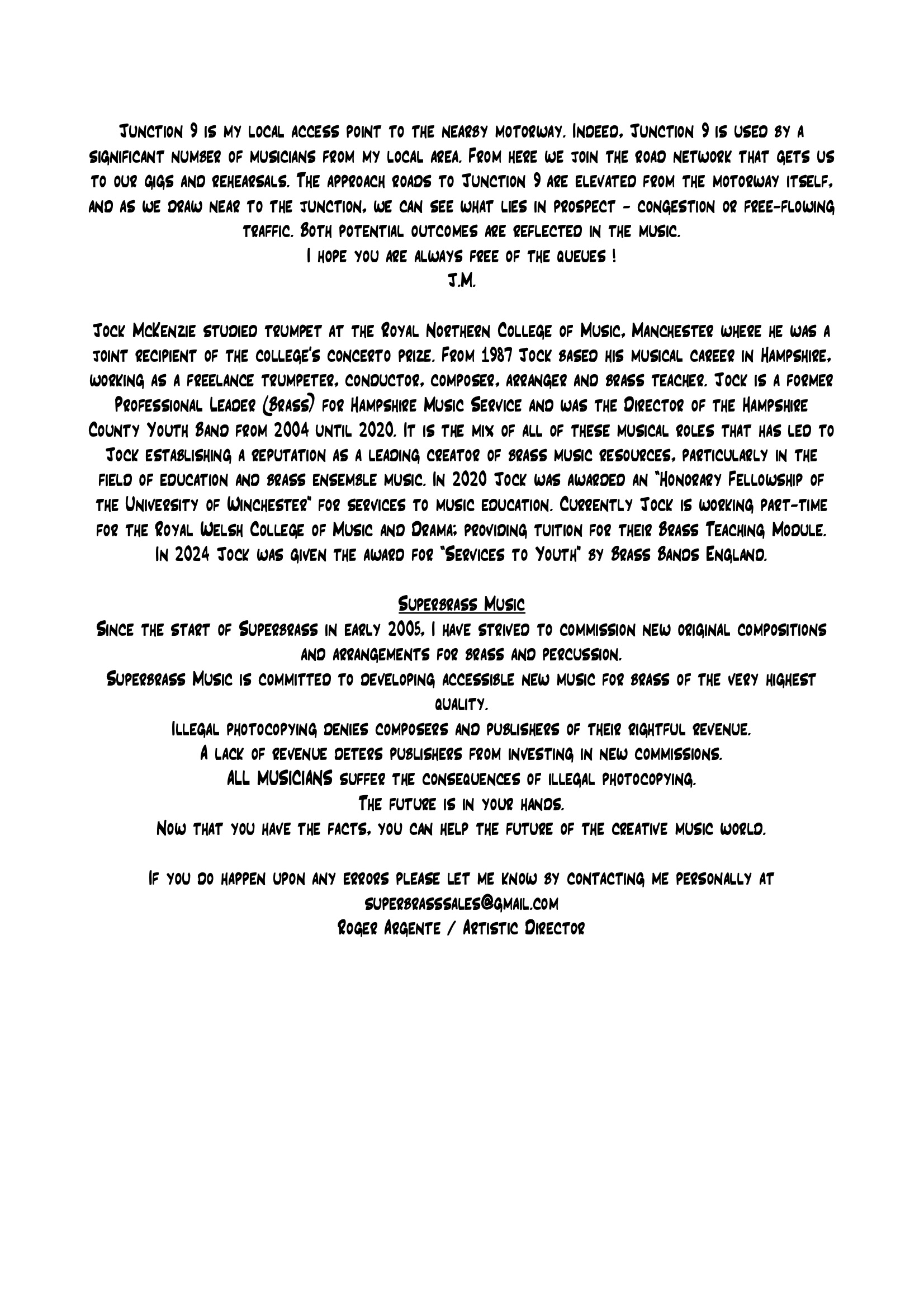 Jock McKenzie studied trumpet at the Royal Northern College of Music, Manchester where he was a joint recipient of the college’s concerto prize. Since 1987 Jock has based his musical career in Hampshire, working as a freelance trumpeter, conductor, composer, arranger and brass teacher. Currently Jock holds the position of Professional Leader (Brass) for Hampshire Music Service and is the Director of the Hampshire County Youth Band. It is the mix of all of these musical roles that has led to Jock establishing a reputation as a leading creator of brass music resources, particularly in the field of education and brass ensemble music.