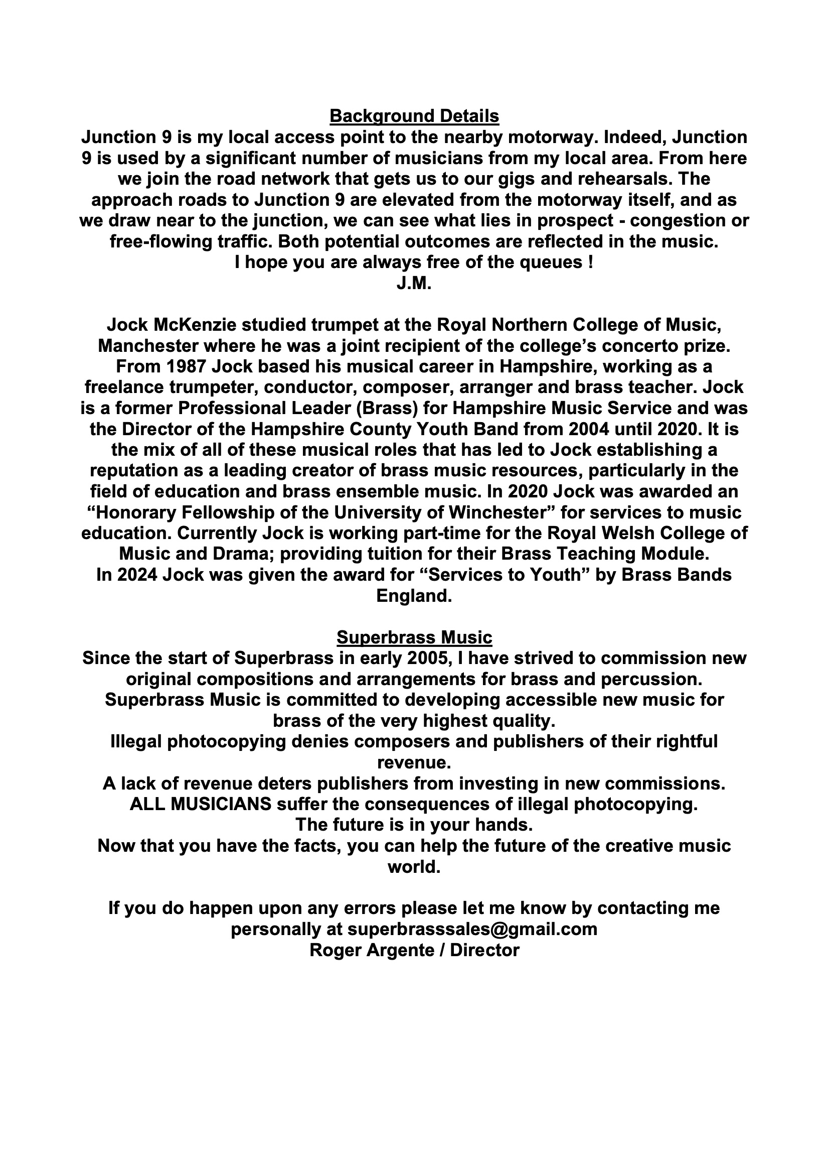 Jock McKenzie studied trumpet at the Royal Northern College of Music, Manchester where he was a joint recipient of the college’s concerto prize. Since 1987 Jock has based his musical career in Hampshire, working as a freelance trumpeter, conductor, composer, arranger and brass teacher. Currently Jock holds the position of Professional Leader (Brass) for Hampshire Music Service and is the Director of the Hampshire County Youth Band. It is the mix of all of these musical roles that has led to Jock establishing a reputation as a leading creator of brass music resources, particularly in the field of education and brass ensemble music. In 2020 Jock was awarded an "Honary Fellowship of the University of Winchester" for services to music education. Currently Jock is working part-time for the Royal Welsh College of Music and Drama; providing tuition for the Brass Teaching Module. In 2024 Jock was given the award for "Services to Youth" by Brass Bands England.