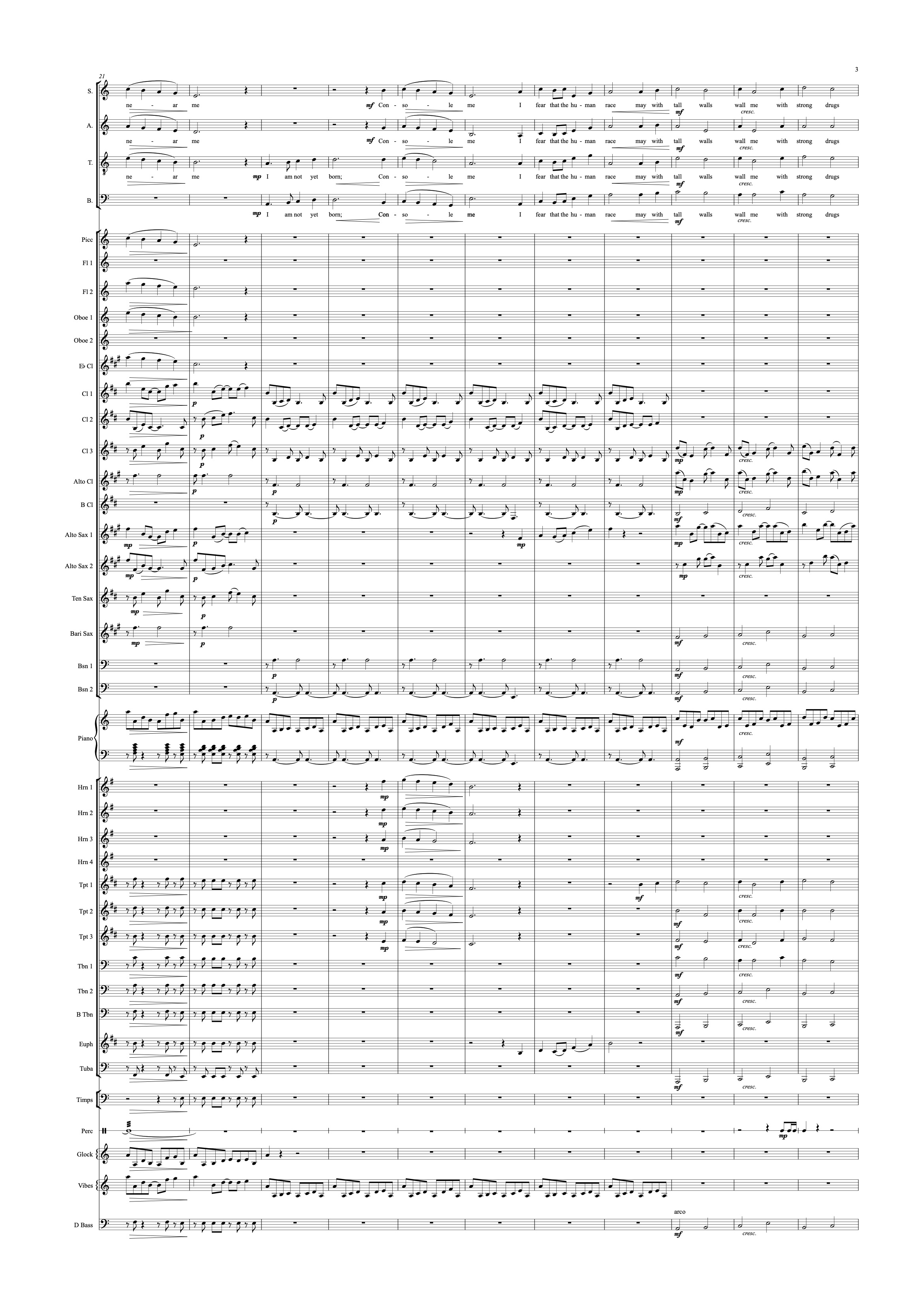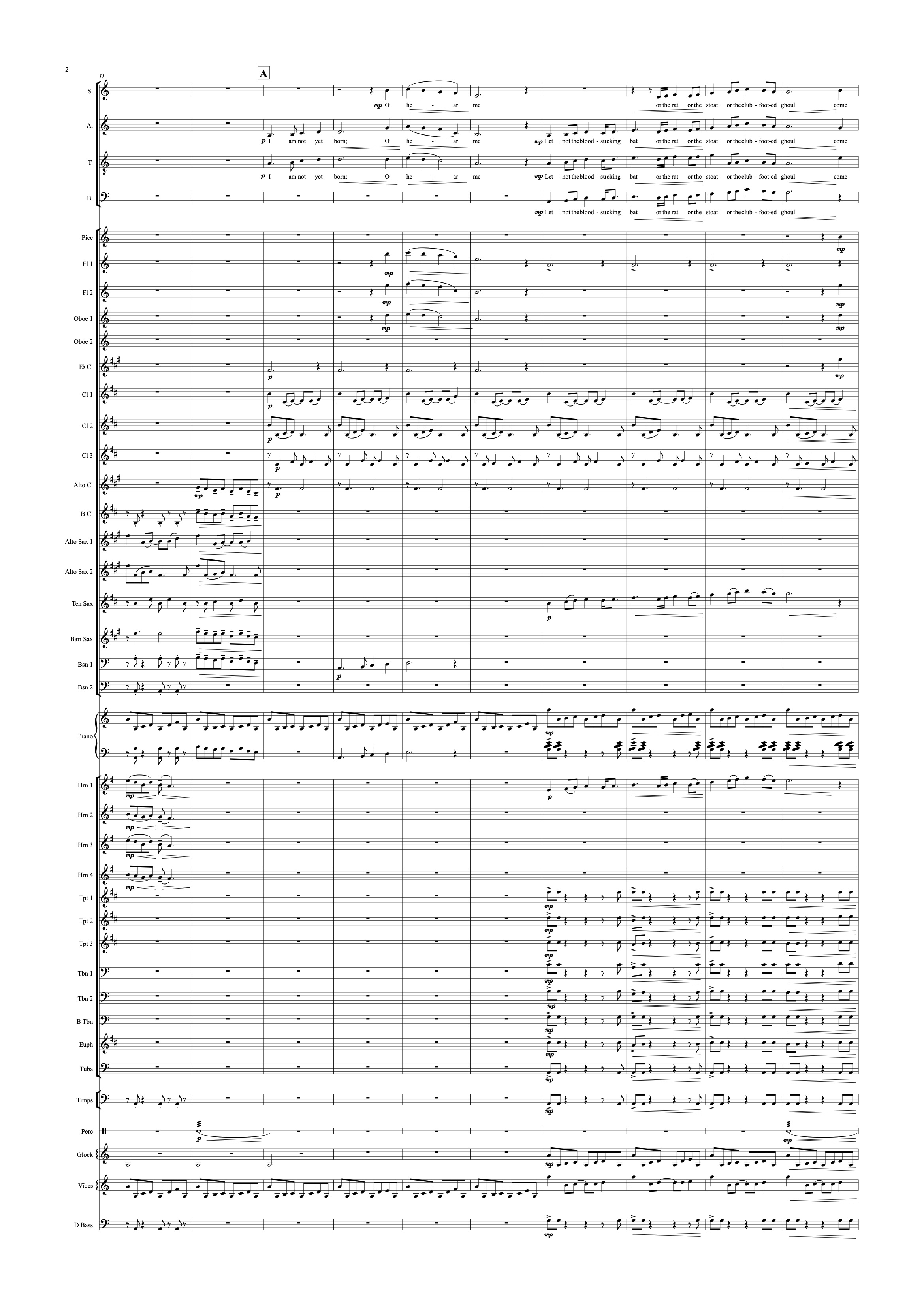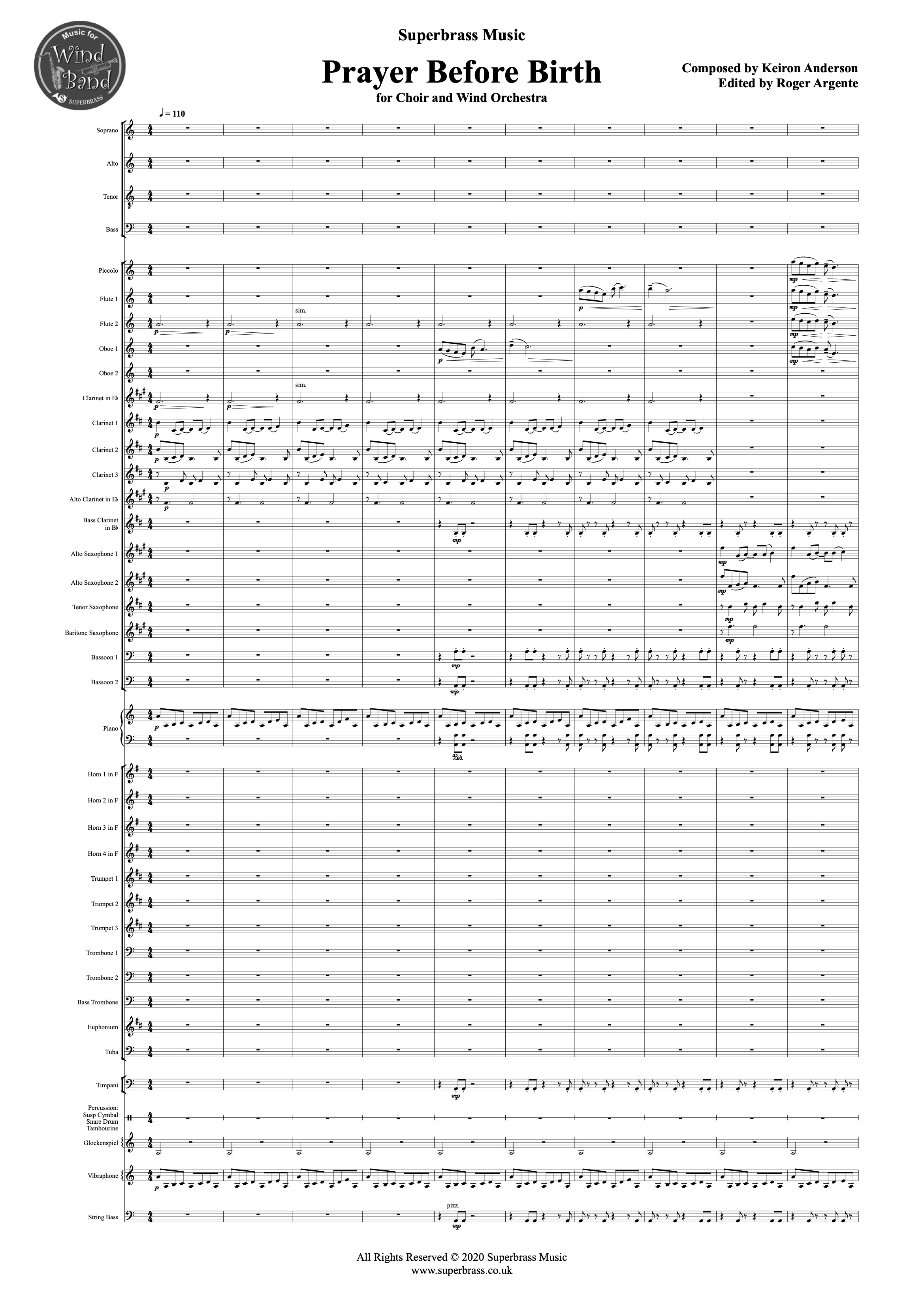 Composed for Wind Orchestra and 4-part choir with the greatest respect for the underlying meaning of this passionate poetry. This is musical setting of the Louis MacNiece poem of the same name. The poem was written during the Second World War, at a time of great turmoil and still relevant today, reflecting the emotional ups and downs of the text. The dramatic monologue takes the reader into the womb of an anonymous mother and written for her child that is not yet born, expressing the fears for the future and is an open attack on modern civilisation.